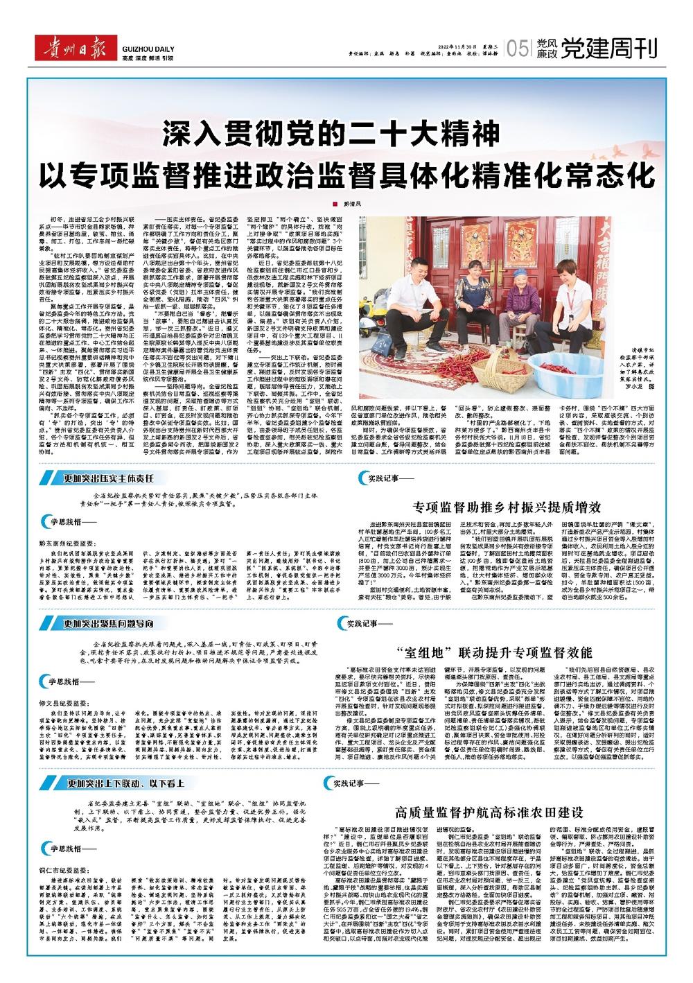 《贵州日报》头版、“党风廉政”专版|深入贯彻党的二十大精神 以专项监督推进政治监督具体化精准化常态化
