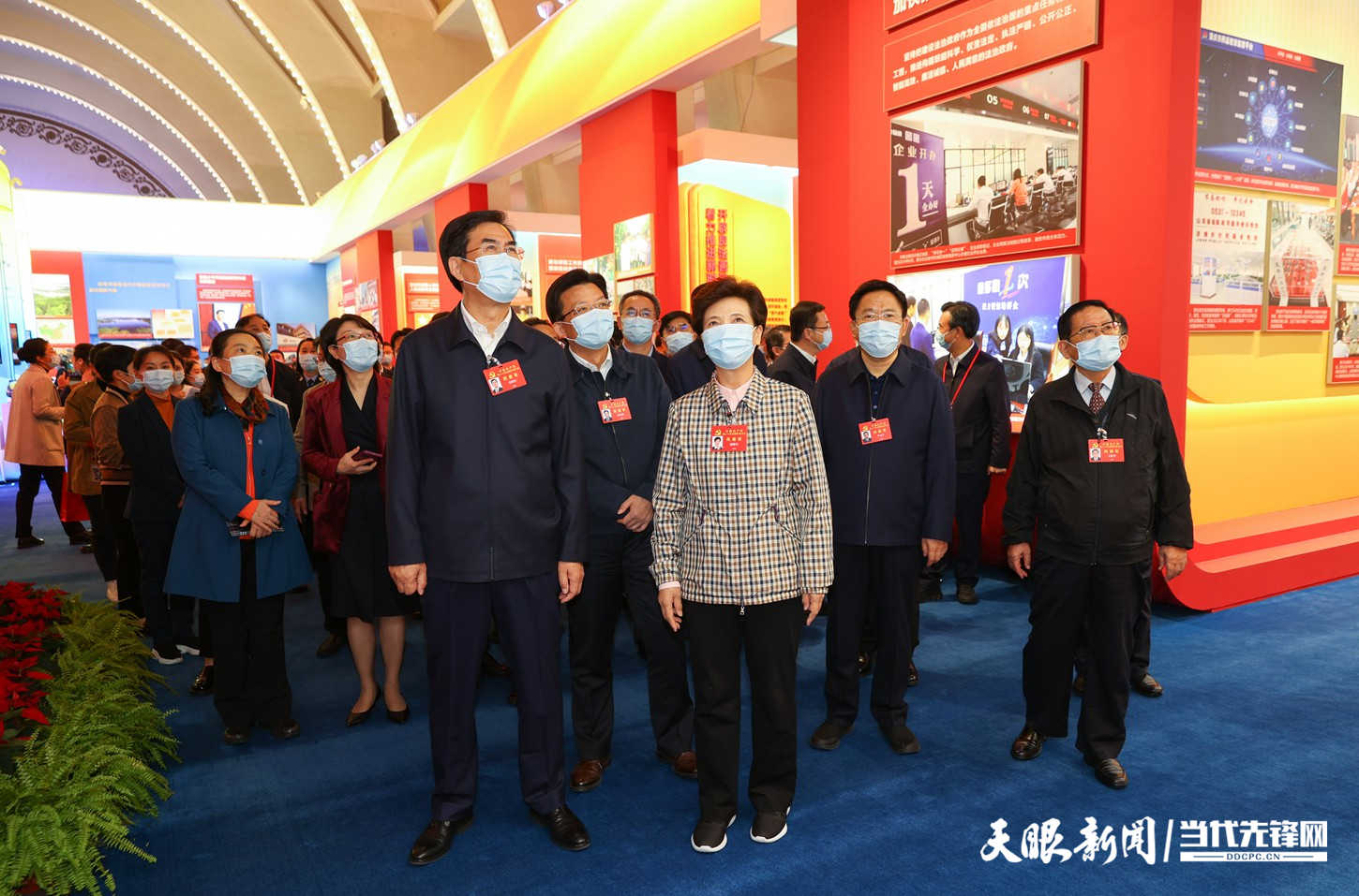 代表们走进展区,认真听解说,仔细看展览。一件件实物、一段段影像、一幅幅图片让大家真切地感受到新时代党和国家事业取得的历史性成就、发生的历史性变革,在有兴义万峰林图片、生态文明贵阳国际论坛年会图片、中国天眼模型等具有贵州元素的展区,代表们驻足观看,为在以习近平同志为核心的党中央坚强领导下贵州各项事业取得的巨大成就感到自豪和振奋。