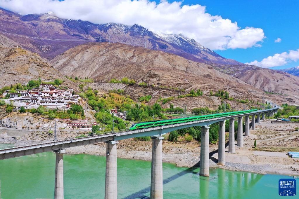复兴号列车行驶在西藏朗县境内(2022年4月14日摄)。新华社记者 觉果 摄