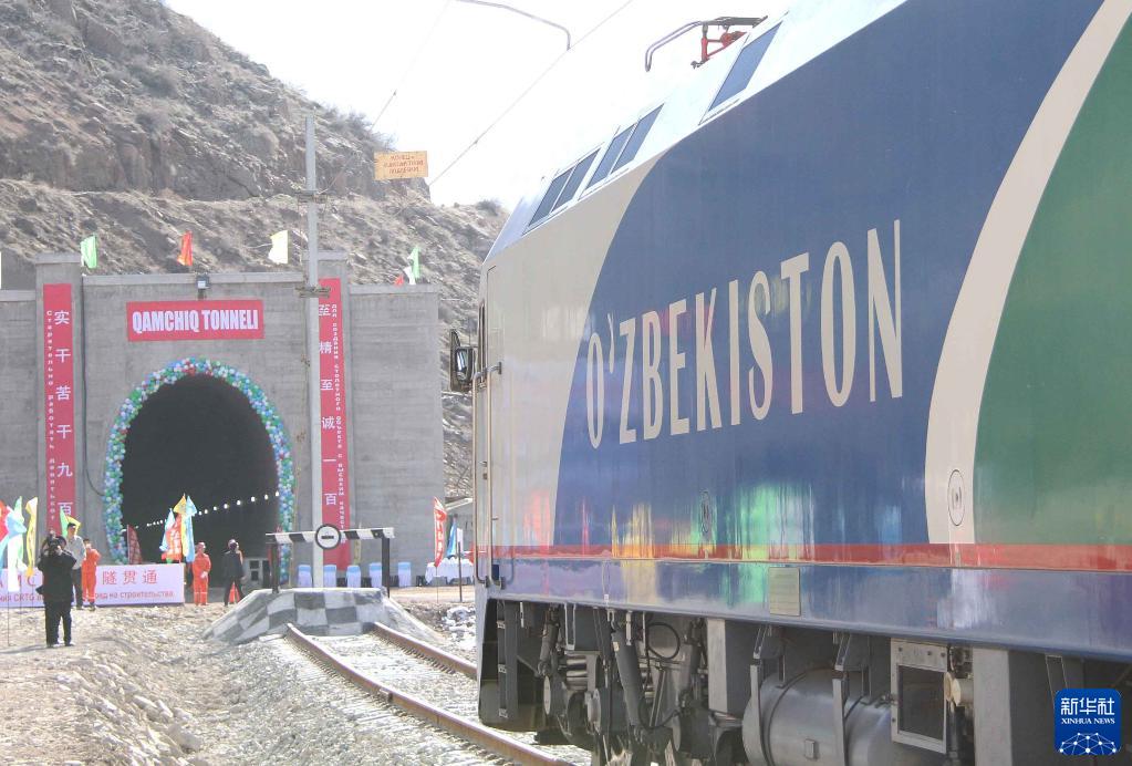 2016年2月27日,乌兹别克斯坦安格连-帕普铁路卡姆奇克隧道全隧贯通。这是一列专列停在隧道进口。新华社记者 沙达提 摄