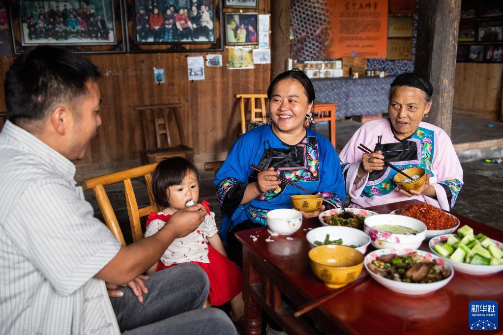 湖南省湘西土家族苗族自治州花垣县双龙镇十八洞村一户村民在吃午餐(2021年7月1日摄)。新华社记者 陈思汗 摄