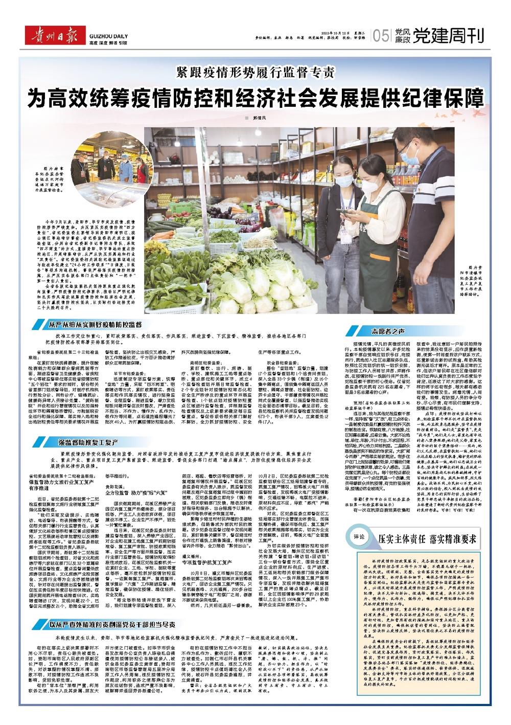 《贵州日报》“党风廉政”专版|紧跟疫情形势履行监督专责 为高效统筹疫情防控和经济社会发展提供纪律保障