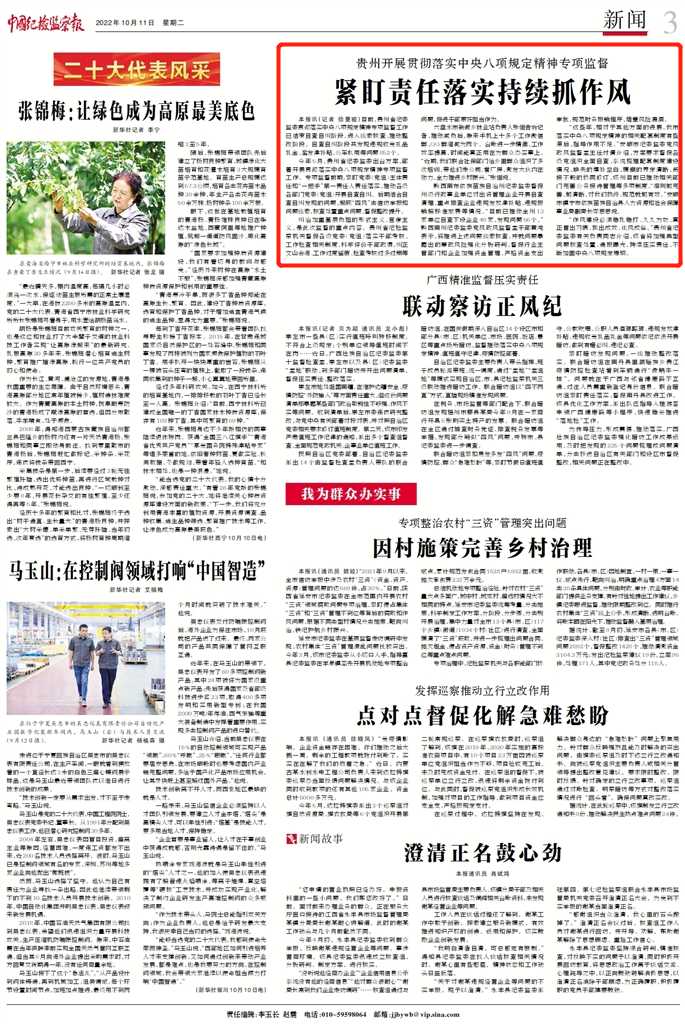 《中国纪检监察报》“新闻”版头条、中央纪委国家监委网站| 贵州开展贯彻落实中央八项规定精神专项监督 紧盯责任落实持续抓作风