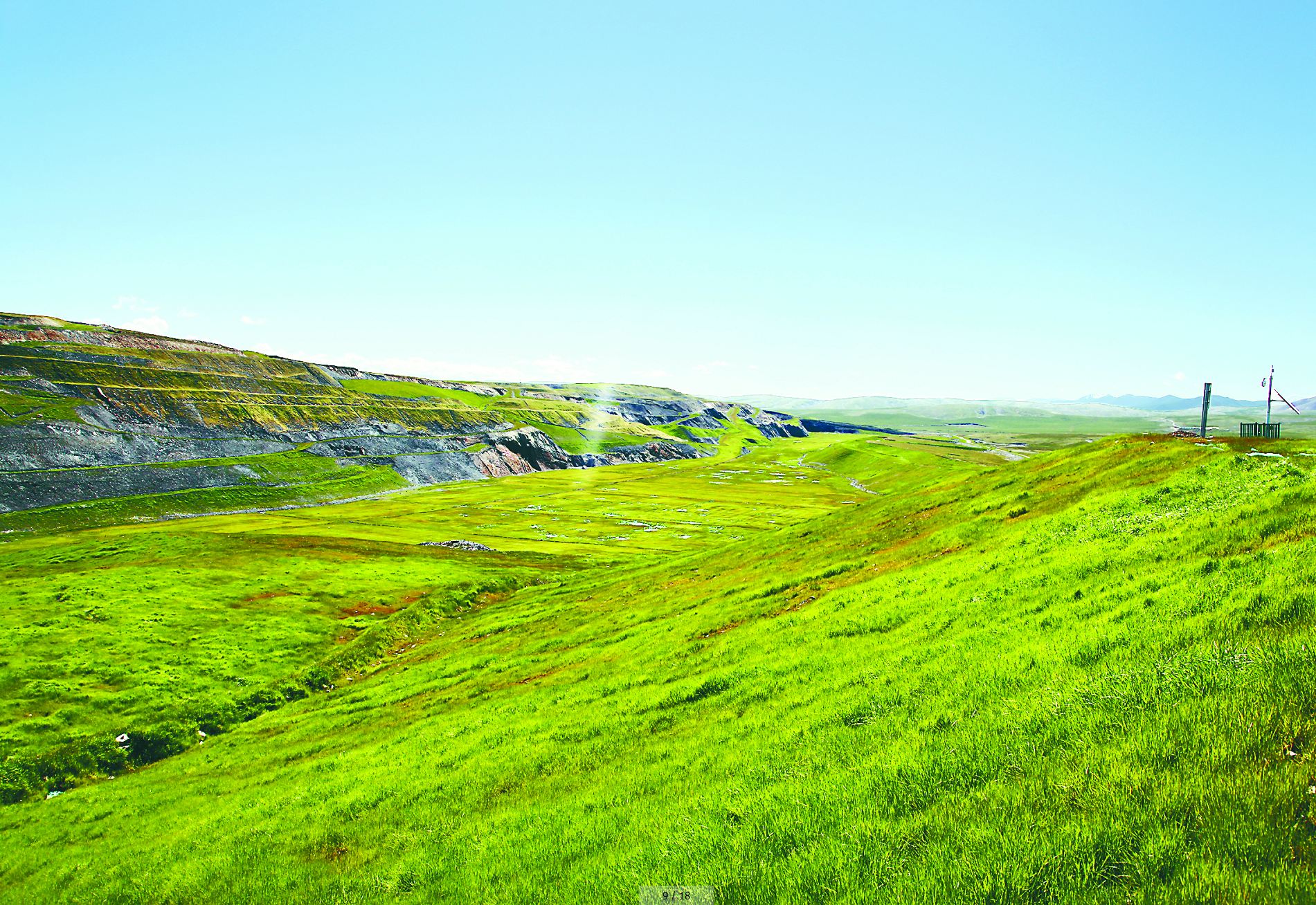 针对青海木里矿区非法采煤问题,纪检监察机关首先从政治纪律查起,推动政治生态和自然生态同步整治。通过采坑回填、渣山复绿、边坡治理等生态修复工程,如今的木里牧草如茵,重获新生。图为2022年7月的木里聚乎更五号井。(青海省纪委监委供图)