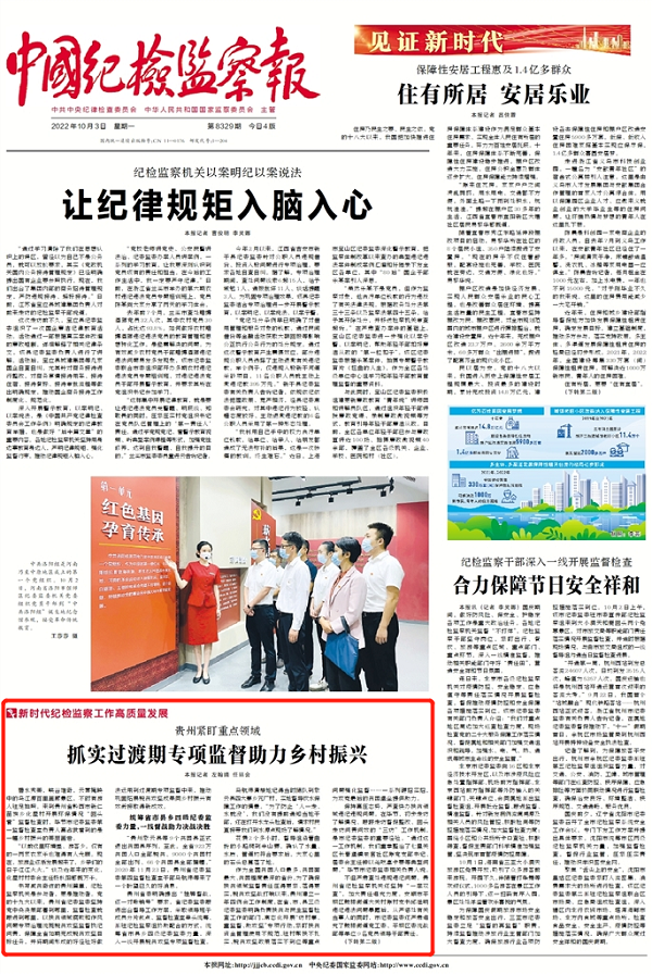 《中国纪检监察报》头版、中央纪委国家监委网站| 贵州紧盯重点领域 抓实过渡期专项监督助力乡村振兴