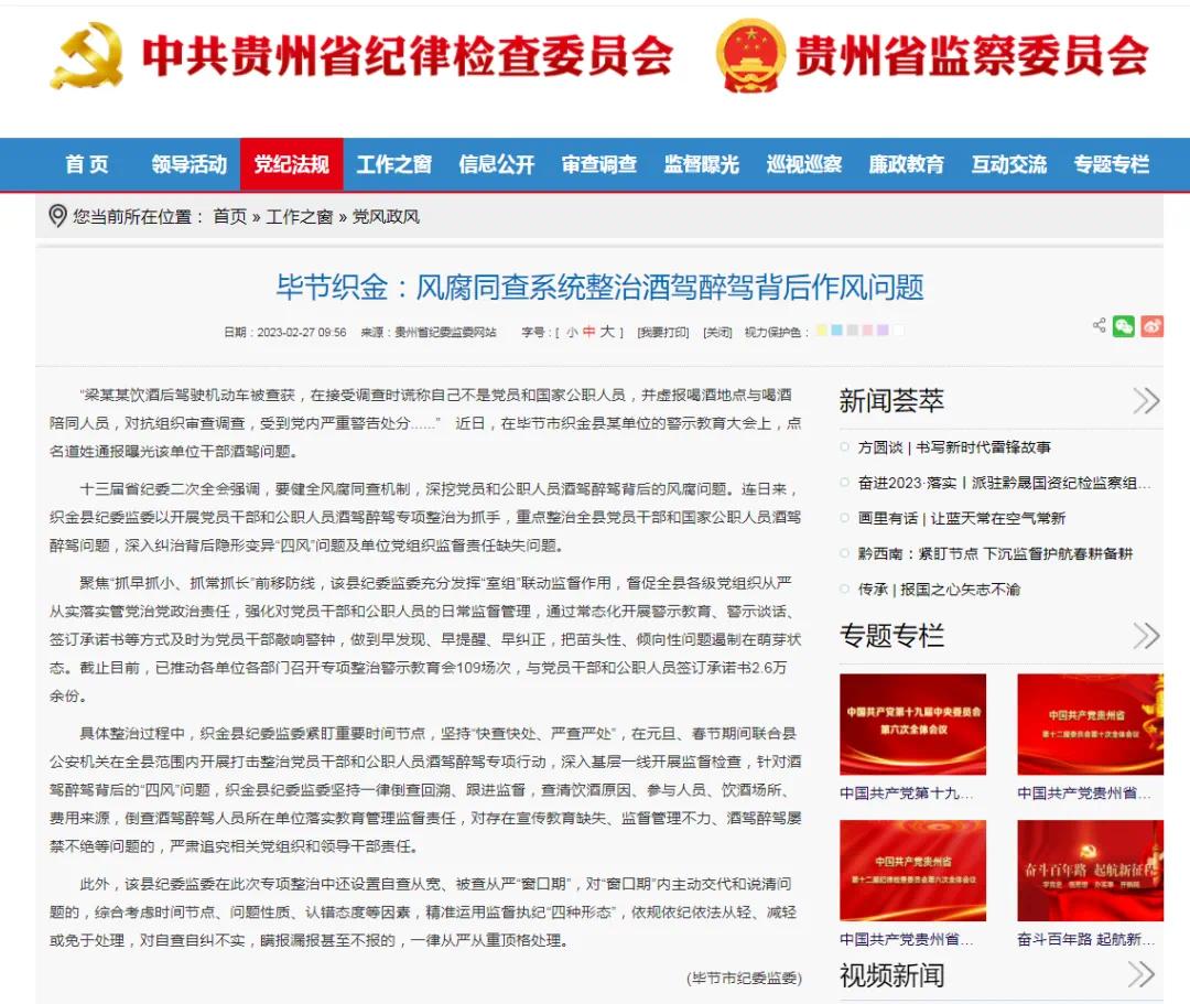 毕节织金:风腐同查系统整治酒驾醉驾背后作风问题