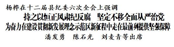 杨桦指出,2020年是极不平凡的一年,全县各级党组织和纪检监察机关在县委的坚强领导下,持之以恒扛牢管党治党政治责任,持之以恒强化政治监督,持之以恒正风肃纪反腐,持之以恒推动完善监督体系,持之以恒惩治漠视和侵害群众切身利益问题,有力推动了中央和省委、市委、县委重大决策部署落地落实,有力推动了全县政治生态持续向上向好,为全县夺取脱贫攻坚决胜战、疫情防控阻击战、经济发展保卫战、“十三五”规划收官战的重大胜利提供了坚强政治保障、作出了重要贡献。在充分肯定成绩的同时,对存在的问题也绝不能忽视,全县党风廉政建设和反腐败工作离党中央、省委、市委的要求和人民群众的期盼还有差距,全县各级党组织和广大党员干部要始终坚持初心如磐、使命在肩,绷紧思想之弦,采取过硬举措,一以贯之、坚定不移推动全面从严治党向纵深发展。