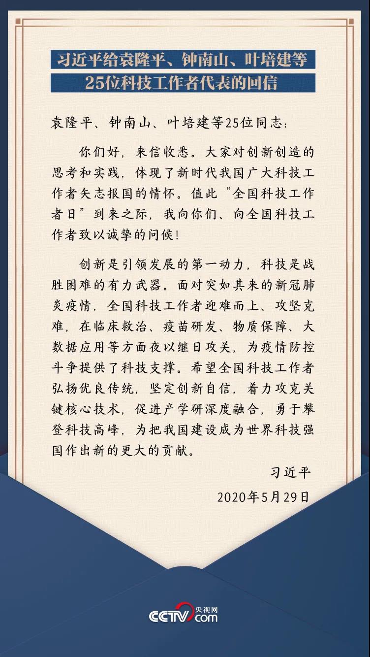 2020年5月29日,他们收到了习近平总书记的回信,总书记向他们以及全国科技工作者致以诚挚的问候。