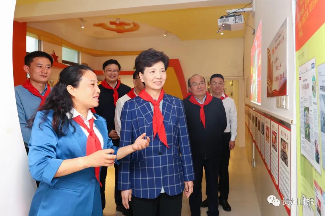 北京市芳草地国际学校贵阳分校是贵阳市政府引进北京优质教育资源联合开办的公办学校。谌贻琴走进校园,详细了解学校以党建带队建工作情况,对学校开展的“红色文化进校园”活动给予肯定,鼓励学校用心用情做好少先队工作,引领广大少年儿童扣好人生“第一粒扣子”,让红色基因代代传。校园里陶艺、茶艺、爱创造、压花等社团活动丰富多彩,谌贻琴认真聆听孩子们充满童趣的介绍,与孩子们一起拼图,祝大家节日快乐。随后谌贻琴与孩子们一起参加全省少先队主题队日示范活动,向新入队的少先队员表示热烈祝贺。她说,少年儿童是祖国的花朵、民族的希望、国家的未来。希望大家做志向远大的好少年,牢记习近平总书记的教导,时刻把祖国和人民放在心中,长大以后做合格的社会主义建设者和接班人;做勤奋学习的好学生,注重培养创新精神,用新知识、新本领创造新生活;做品德优良的好孩子,尊敬师长、孝敬父母、乐于助人、明礼诚信,争当学习和实践社会主义核心价值观的小模范;做身心健康的好儿童,经常参加劳动和体育锻炼,自觉培养不畏艰难、顽强奋进的意志品质,长大后为祖国和贵州的发展贡献力量。