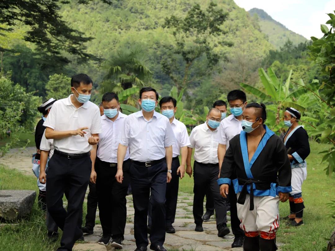 夏红民在荔波县瑶山古寨调研旅游产业化推进情况。